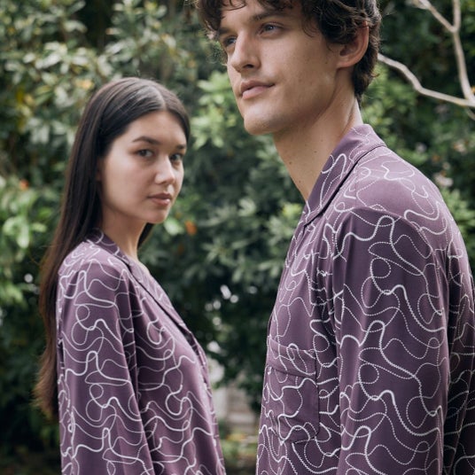 Silktouch 七分袖パジャマセット:新作プリント「オウバジーン ループ」