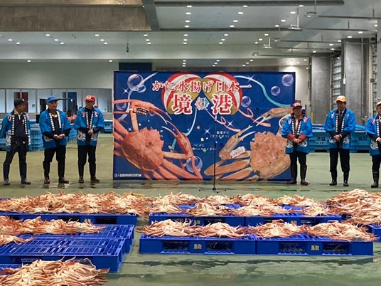 ここは鳥取県と島根県の文字通り県“境”にある港で、2県の船が水揚げをすることから、松葉ガニと紅ズワイガニを合わせた水揚げ量が全国でもトップクラスの大漁港として知られています。
