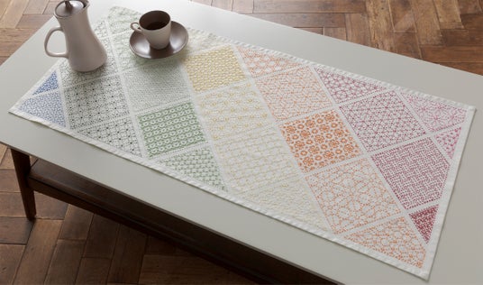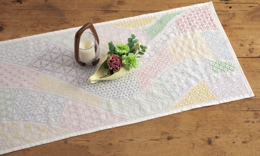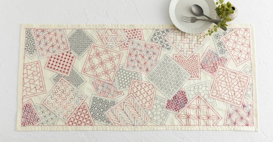 和洋の暮らしに映えるモダンなデザインは、一枚で多種多様の刺し子模様が楽しめます。