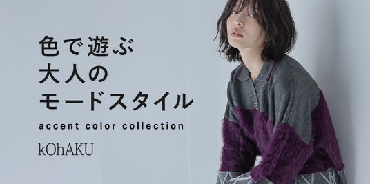 モノトーンの中にアクセントカラーをひとさしすることで、kOhAKUらしい大人のモードスタイルを提案します。