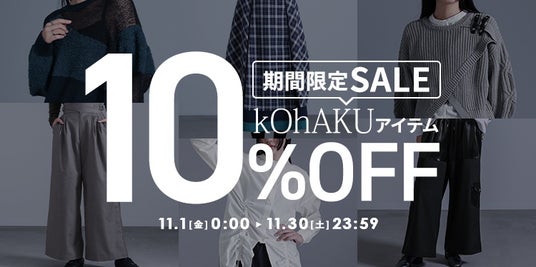 11/30(土) 23:59までkOhAKUアイテム10%OFFキャンペーン実施中!