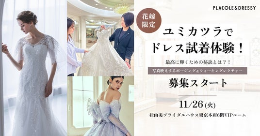 この度「PLACOLE & DRESSY」は、世界的なウェディングブランド「Yumi Katsura」とコラボレーションし、花嫁を対象とした特別イベントを開催いたします。結婚式に向けて自分らしい美しさを最大限に引き出す秘訣を、プロのドレスコーディネーターから学べる貴重な機会です。これから結婚を控える方、結婚式で最高の自分を表現したいと願う全てのプレ花嫁に向けた特別なイベントです。ぜひご参加ください。