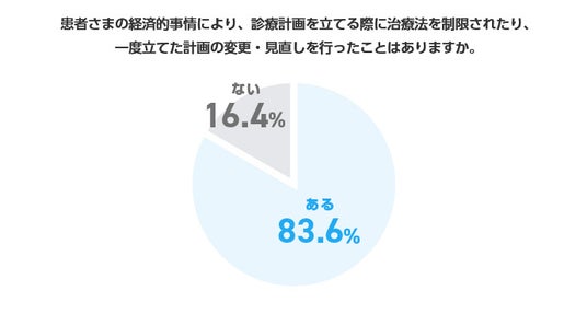 ・患者さまの経済的事情に鑑み、がんの治療計画を見直した経験がある医師は83.6%