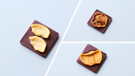 台湾の福湾(フーワン)のカカオと、国産きび砂糖を粗挽きで仕上げたビーントゥバーチョコレートに、彩り豊かな完熟の国産ドライフルーツをトッピングしました。カカオの風味とフルーツの自然な甘みが広がる一品です。