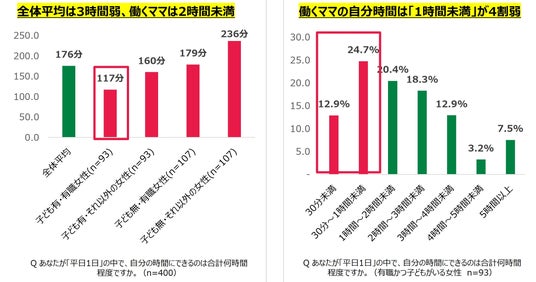 全体平均時間は3時間弱。子どものいない有職女性よりも61分短い結果に。