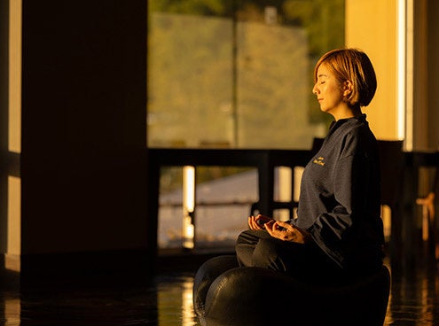 国際デザイン賞受賞のリトリートチェアで瞑想はいかがでしょうか。背筋を伸ばしてゆったりと座り、深いリラクゼーション体験をお楽しみいただけます。(※オプションでのご案内となります。予めご了承ください)