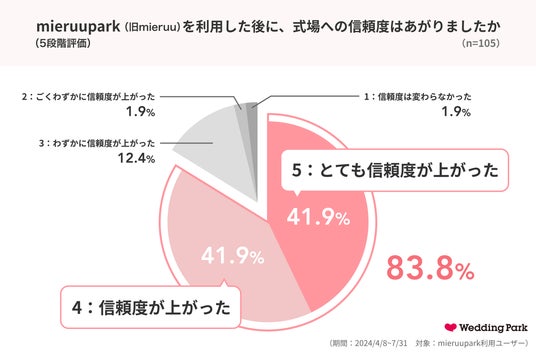 またmieruupark(旧mieruu)ユーザーへのアンケート調査※では「mieruuparkを利用した後に、式場への信頼度があがった」と回答した人が8割以上いることから、mieruuparkを利用したカップルの信頼度の変化が現場支配人・プランナーの働きやすさ改善にも効果が見られることがわかりました。