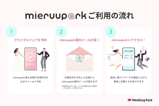 業界初!式場の費用データをオープンに。ユーザーの8割がオススメする新サービス「mieruu(ミエルー)」β版を全国20会場で運用開始 ウエディングパークとテイクアンドギヴ・ニーズが共同開発
