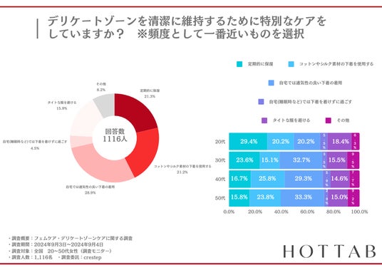 【調査概要】フェムケア・デリケートゾーンケアに関する調査【調査期間】2024年9月3日~2024年9月4日【調査対象】全国 20~50代女性(調査モニター)【サンプル数】1,116名【調査委託】crestep
