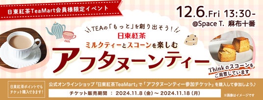 日東紅茶ブランドを展開する、三井農林株式会社(所在地:東京都港区 代表取締役社長:佐伯 光則 以下、当社)では、日東紅茶TeaMart会員の皆さまと紅茶を楽しむ「日東紅茶 ミルクティーとスコーンを楽しむアフタヌーンティー」を開催いたします。今回のテーマは「ミルクティー」。ミルクティーのおいしい淹れ方や楽しみ方をご紹介いたします。イベントでは、様々なミルクティーのテイスティングや紅茶とスコーンのペアリングをお楽しみいただけます。紅茶が好きな方はもちろん、スコーンが好きな方、ミルクティーを飲んでみたいという方も、皆さまのご参加をお待ちしております!
