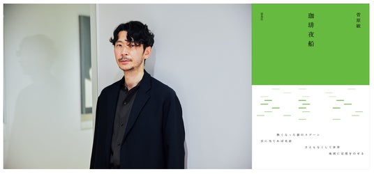 詩人・菅原敏(すがわらびん)氏は、執筆活動を軸に、毎夜一編の詩を紹介するラジオ番組「at home QUIET POETRY」(J-WAVE)や、アーティストへの歌詞提供、ギャラリー展示、国内外での朗読会など幅広い活動で詩を表現しています。11月7日に発売した菅原氏の4作目となる著書『珈琲夜船』は、珈琲と旅にまつわる詩をまとめた1冊で、「白河夜船」から着想された京都に縁のあるタイトルです。鮮やかな緑の装丁は、コーヒーベルトと呼ばれる珈琲豆の産地が密集した熱帯エリアに生い茂る珈琲の葉を連想させます。