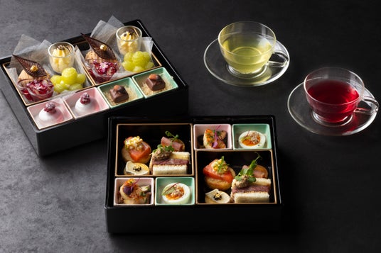 12 種類の料理とスイーツを重箱に詰め込んだお重スタイルのアフタヌーンティー(イメージ)