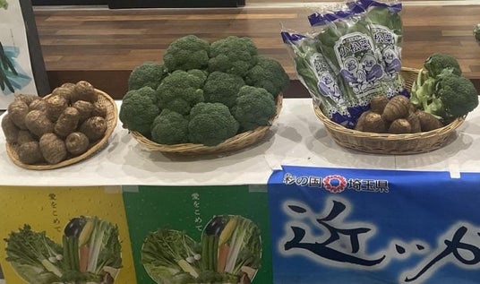 また、産出額が全国1位であるさといもや全国2位のねぎ、ほうれんそう、かぶなどの埼玉県産野菜を展示しました。