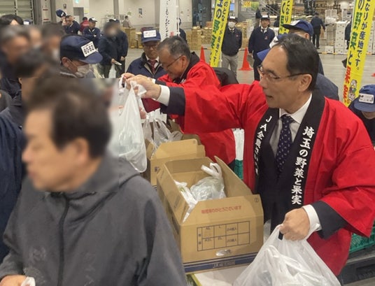 11月は埼玉県の「地産地消月間」であり、産出額が全国1位のさといもをはじめ、秋野菜が豊富に出回る時期です。このたび、県産農産物を多く取り扱う豊洲市場の売買参加者に向けて、埼玉県知事が初めて、埼玉県産秋野菜のPR活動を行いました。