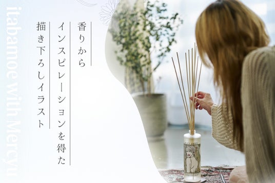 「いい女」のイラストで人気のアーティストitabamoeさんの描き下ろしイラストを堪能できる、コラボディフューザーが発売。香りはmercyuで人気の3種をセレクト。