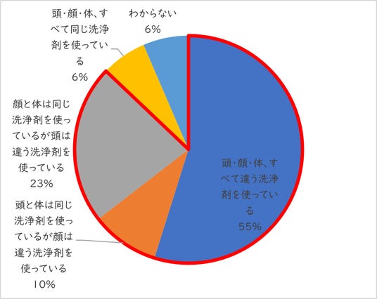 ・入浴サポート経験がある方のうち55%が、頭・顔・体、すべてに異なる洗浄剤を使っている
