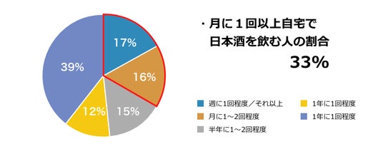 日常的に飲酒習慣があっても、日本酒が週1回以上の頻度で食卓に上がる人の割合は17%にとどまり、月に1-2回程度の人と合わせても33%、約3分の1と、普段の「家飲み」では日本酒があまり飲まれていない実態がわかりました。