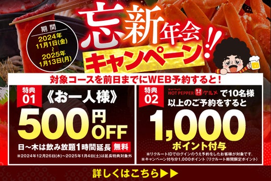 お得な忘新年会キャンペーン実施中!