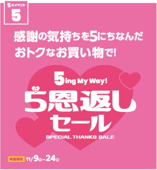 【5】 感謝の気持ちを5にちなんだおトクなお買い物で!「5恩返しセール」