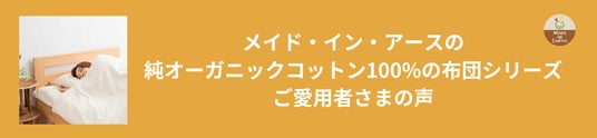 2025年で誕生30周年を迎える、純オーガニックコットンの専門ブランド「メイド・イン・アース」では、幅広い層に人気のある「オーガニックコットン布団シリーズ」で最高の天然の風合いの快眠を、お届けします。