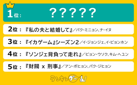 2位はWebマンガを原作とするファンタジー・ロマンス作品の『私の夫と結婚して』。3位は前作を超える新たな展開に期待が高まっている『イカゲーム』シーズン2。4位はタイムリープファンタジー・ロマンスの『ソンジェ背負って走れ』。そして4位と僅か2票差で5位にランクインしたのは、アクションコメディーの『財閥 x 刑事』でした。