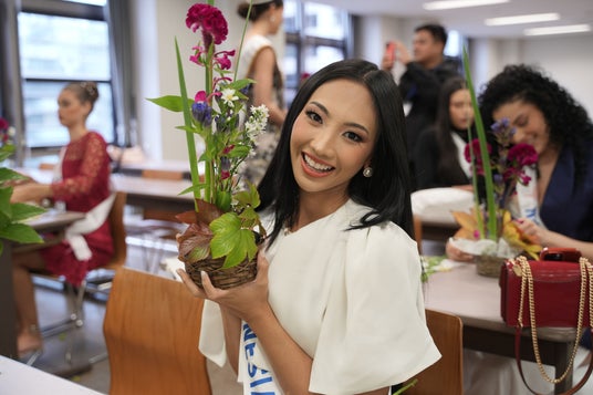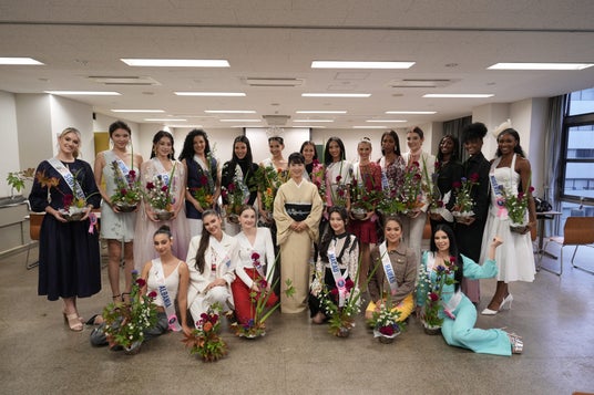 2024年11月6日(水)に『ミス・インターナショナル世界大会2024』の出場者約70名の中から代表として19名が、いけばなの根源 華道家元池坊にていけばな体験を行いました。思い思いに自由に花をいけるスタイルの自由花を体験し、花をいけました。その後ひとりずつ指導を受け、さらにいけばなの造形を深めるなど、日本文化に触れる時間となりました。