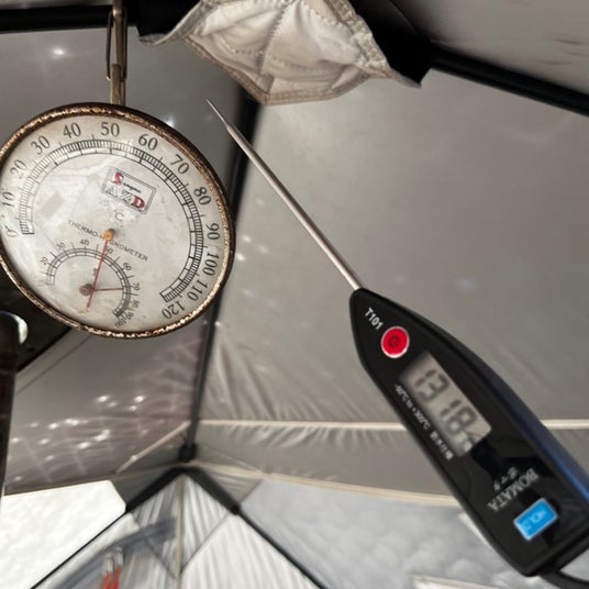 温度計が振り切れる最大温度(最大値計測不可のため上昇中の画像)