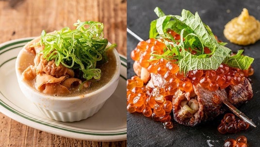 丁寧に焼き上げた串焼きを、彩り鮮やかにご提供いたします。イチオシはバラエティ豊かな素材をお肉で巻いた「肉巻き串」中でも、半熟卵とチーズ、テリマヨソースがたまらない「とろけるチーズ卵」をはじめ、「豚トマト」や「豚ミョウガ」が人気です。また、贅沢に楽しみたい日には高級和牛の上にいくらをたっぷりとかけた「にくら」もオススメ◎他にも、こだわりの逸品をご用意しておりますので、ぜひお試しください。