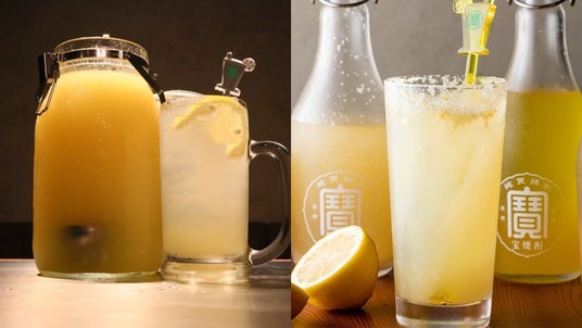「ヨコハマ醸メ(かもめ)レモンサワー」はCHARCOAL STAND名物。まずはレモンを皮ごとブレンダーにかけ、焼酎に漬け込みます。雑味がなくレモンの味が際立つ、レモサワ通納得のリキュールに。はちみつや塩麹などを加え「甘メ/塩メ/苦メ/酸メ」の4つの味を作り、強炭酸で仕上げます。