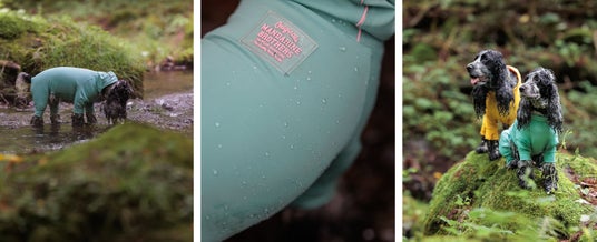 耳が長い長毛犬だと耳の濡れや汚れで、ウエアが泥汚れになりやすいが撥水が効いているので軽減しました。」