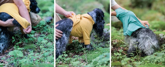 「着せるときに注目したのが、ストレッチ性。他社製品だとストレッチが強すぎて犬の動きが妨げられるものが多いのですが、このウエアは縦横のストレッチ性が抜群に良かったです。程良い生地の厚みと締め付け感も犬にストレスを与えすぎない強さで快適そうでした」