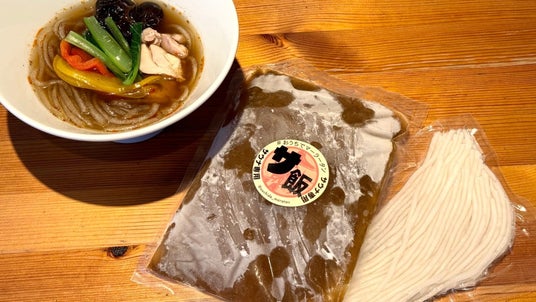 食材は国産地鶏、徳島県の柚子、鹿児島県のトビウオ(焼きあご)など、漢方(スパイス)も厳選しており、付属の極太生はるさめは奈良県で製造されている無漂白のオリジナル麺です。