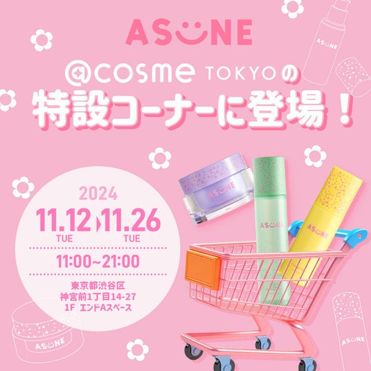 アットコスメTOKYOの1F エンドAスペースにて、ASUNEの特設コーナーが登場します。