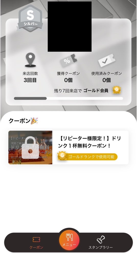 来店回数に応じてランクが上がり、ランクに応じてお得なクーポンを獲得することができます。