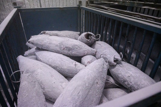 創業50周年を迎える有限会社静岡中央魚類の水揚げされたマグロの冷凍庫へ潜入!-50℃の冷凍庫内では数秒で吐息も凍り、まつ毛も凍るほどの極寒です。日本一の冷凍マグロ水揚げ量を誇る清水港のマグロがどの様に保管され、さばかれるかなど、普段は決して見ることが出来ない工程を見学します。
