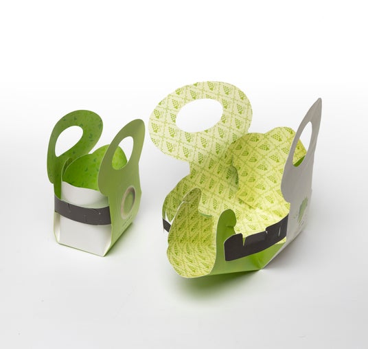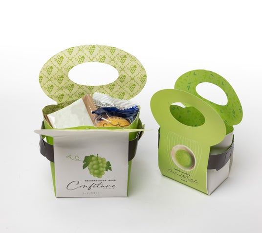 そこで、クリエーターが考えたのがバッグ型のパッケージ。さらに、接着剤を使わず一枚の紙で組み立てられる構造を目指しました。