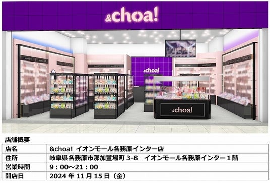 岐阜県内2店舗目として「&choa!イオンモール各務原インター店」が11月15日(金)にオープンいたします。