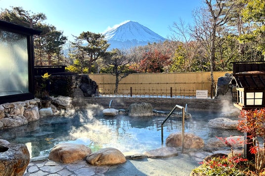 目の前に富士山を眺めながらお風呂に浸かることができる「霊峰露天風呂」や「パノラマ風呂」の他、炭酸泉や洞窟風呂など全16種類のお風呂が揃う日帰り温泉施設です。館内には、お風呂の他にも、日頃の疲れを癒してくれるボディリフレッシュルーム「おあしす」や、地元山梨の食材を使用した料理が味わえるお食事処の「ふじざくら」、SL列車が食事を運ぶ個室のお食事処「お狩場」もございます。他にもお風呂上りにゆっくりお寛ぎいただける無料休憩室、迫力満点の富士山を眺める有料休憩室もございます。お風呂でリフレッシュした後は、館内の充実した設備でくつろぎのひと時をお過ごしください。
