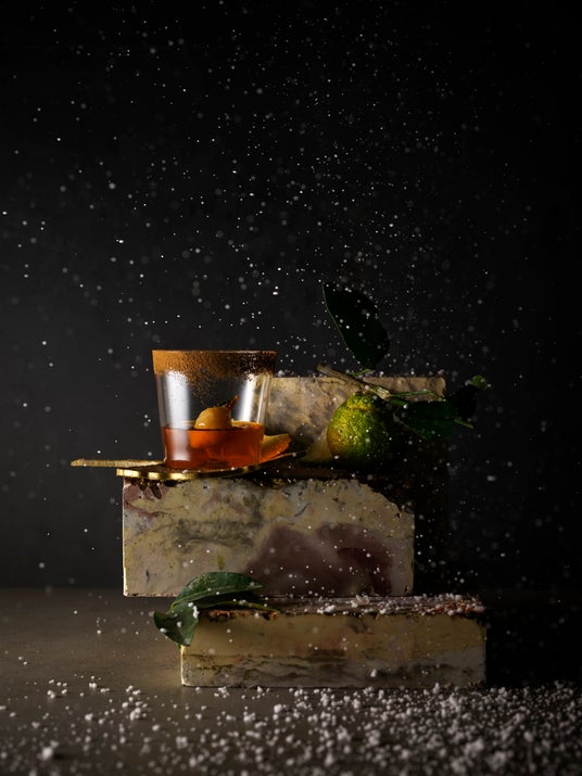 ・材料:パトロンシルバー、炭酸氷、柚子、白味噌のアイレ、オーガニックアガベシロップ