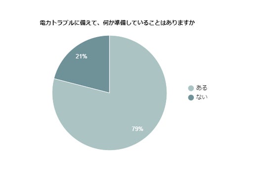 電力トラブルに備えて、何かしら準備をしていると回答したのは全体の79%でした。