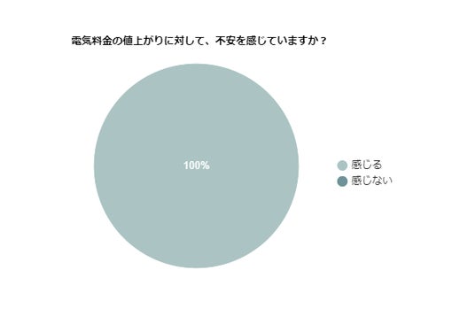 – 電気料金の値上がりに対して回答者全員が不安を感じている