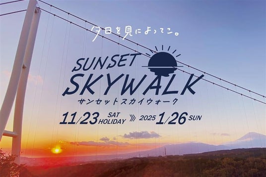 全長400m、日本一の歩行者専用つり橋「三島スカイウォーク」(所在地:静岡県三島市、運営:株式会社フジコー、本社:静岡県三島市、代表:宮澤俊二)は、つり橋から望む夕景を楽しめる「サンセットスカイウォーク」を2024年11月23日(土・祝)から2025年1月26日(日)まで期間限定開催いたします。また、秋の味覚を感じる限定秋スイーツを2024年12月1日(日)まで発売しています。