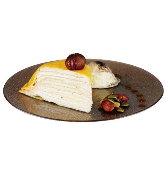 13枚のクレープの間に栗のクリームとカスタードクリームを加えたことにより、味わいと上品さが増しております。秋らしい一品です。