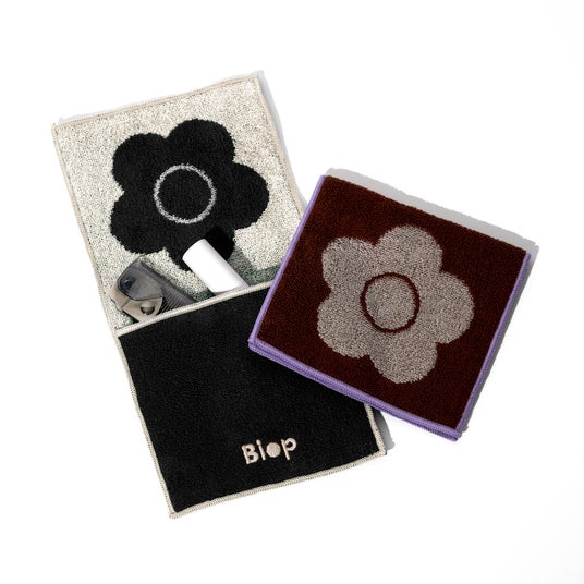 大きなデイジーがポイントの、コンパクトで使いやすいポーチタオルミニポーチタオル BLK/BRW 各1,485円(税込)