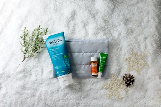 ニオイ*、皮脂づまり、べたつき、乾燥の頭皮悩みにアプローチするスカルプクレンジング、秋冬大活躍のマルチ保湿クリームのお試しサイズ、すっきりとしたハーブの香りのボディオイルのお試しサイズが<数量限定>キットに。ヴェレダ オリジナル ポーチ付き。