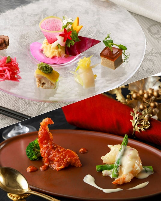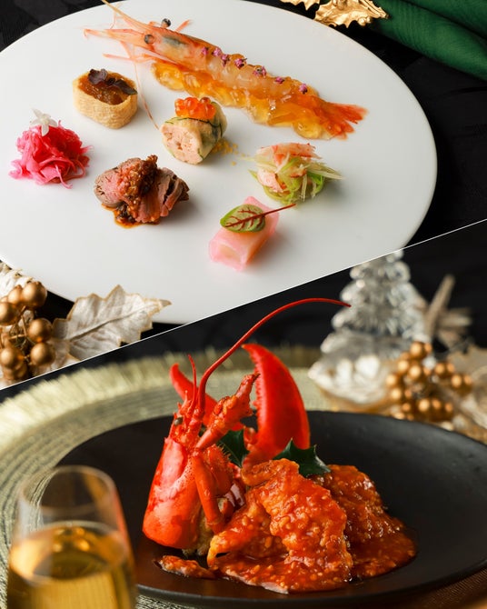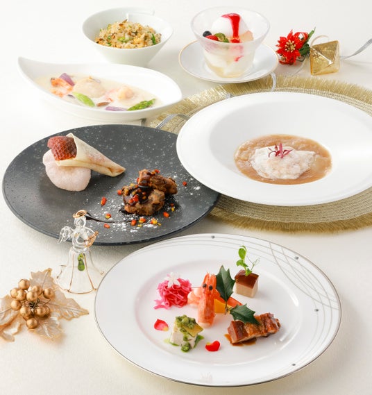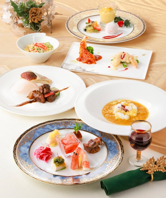 ・聖夜を彩る前菜盛り合わせ・ふかのひれと蟹のスープ・海老の柚子香り炒め