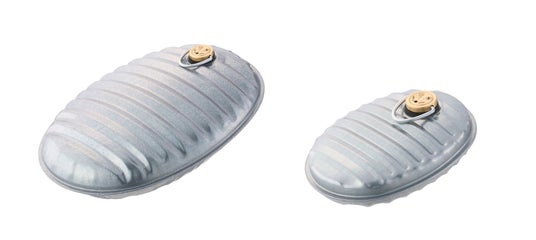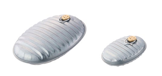 2.5Lサイズの底面はフラットになっており、安定して注湯がしやすい構造。2サイズともに、暖房面積を少しでも広くするため、湯たんぽの表面は波形に。定番のトタン製で丈夫で長持ちするうえ、丈夫で凹みにくくするために内部に取り付けた強力な支柱や、水切りがスムーズに出来るように口金を改良するなど、きめ細かな配慮が多数。SGマークを取得しており、安全性の基準を満たしている。