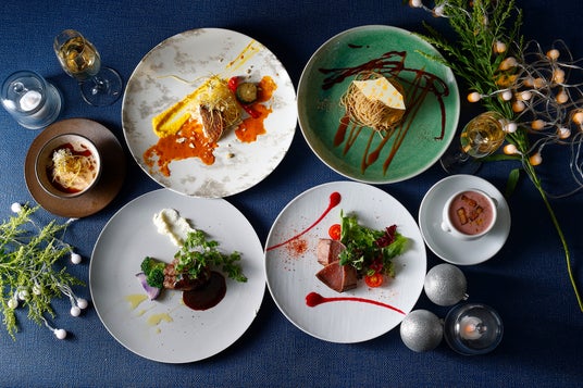 Cafe & Dining ZelkovAでは、イルミネーションの光が降り注ぐ煌びやかなテラス席限定で、あたたかいお料理を中心に揃えたコースをご用意いたしました。ソースアートが目を惹く鮮やかなサーモンのハーブマリネから始まり、芳香なポルチーニのチーズ焼きリゾット、赤ワインでじっくり煮込んだ柔らかな牛ホホ肉、さらにデザートには温製のりんごブリュレが登場。身も心も温まるメニューとともに、大切な方と心躍るひとときをお過ごしください。