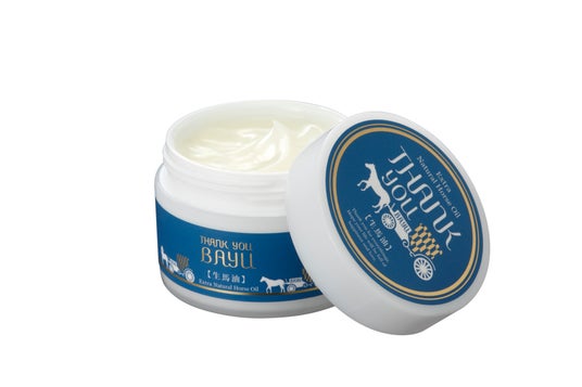サンキューバーユの「こうね100%生馬油」は、一頭の馬からわずか数キロしか得ることができない※、馬刺しとしても食される希少な部位「こうね(タテガミの根元)」の油脂のみを原料に、酸化防止剤・保存料・香料などの添加物を一切使用せず、国内で丁寧に精製・精油した100%天然オイルです。古くから火傷や乾燥肌などのケアに使われている一般的な馬油と比べ、においが少なく、サラッとしているため、美容オイルとしても愛用されています。(※一般的な馬油は馬一頭約1,000kgから腹・尻部を中心に約200kg得られます)
