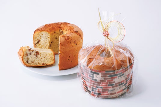 【内容】国産栗のペーストと甘露煮を使用したシフォンケーキ。口に入れた瞬間、栗の風味が広がり、ふっくらとした食感を楽しめます。